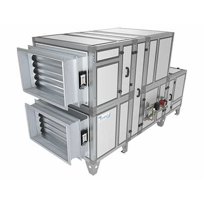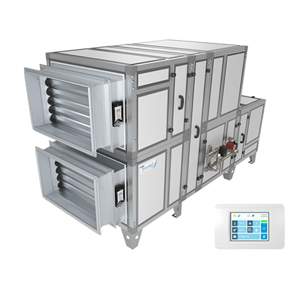 - Приточно-вытяжная установка с роторным рекуператором, водяным охладителем.