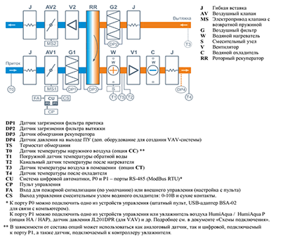 - Управление увлажнителем воздуха с пульта вентустановки.